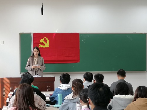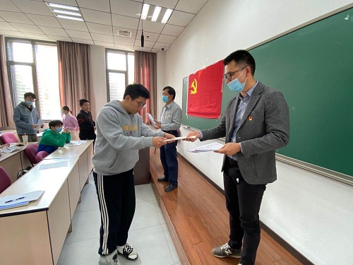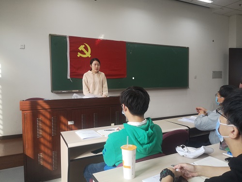 91九色 2020级硕士生张迎泽代表91九色 入党积极分子发言。她表示,成为一位人大人,非常渴望加入党组织,将自己的个人价值与国家和人民的利益更好的结合起来,为建设社会主义贡献自己的力量与热血,不断将党的正能量传递给人民群众。她认为,仔细研读经典著作,认真参加党课的学习与讨论等,才能成为更适应当今社会具有入党资格的青年。