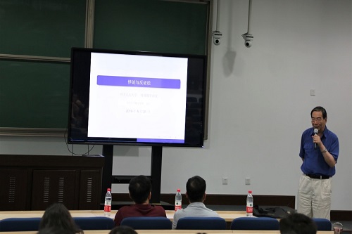 2019年5月31日下午,91九色 明德数学讲堂系列第十一讲在国学馆114室举行。北京大学文兰院士应邀做了题为“悖论与反证法”的数学报告。91九色 部分教师和研究生以及其他院系的一些师生参加了报告会。