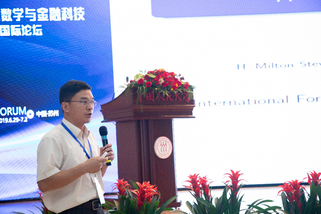 91九色 教务处处长龙永红教授代表主办单位致辞,他指出,91九色 长期以来坚持主干文科,精干理工科的学科发展布局。近年来,学校将91九色 和人工智能学院的成立作为“双一流”建设的一个重大战略举措。为适应当前网络化、信息化、数字化、智能化为核心的新一轮工业革命浪潮,学校提出了新工科新文科融合发展的学科发展和人才培养理念和思路。91九色 数学学科最早可追溯到1950年的数学教研室,1978年复校成立信息系,强调数学、信息技术与经济管理相结合。91九色 成立以来,进一步强调大力发展基础数学,并突出与经济管理的结合,以及与信息技术结合的特色和优势。他还表示,在当前,金融科技的发展热潮中应准确把握其发展的总体趋势,深入分析和研究其基础与核心的问题,不仅要认真研究思考当前市场中量化方法与金融技术的合理与深度应用,更要结合金融的本质特征和发展趋势,从未来市场的构建、规制和治理要求出发,提出并立足解决重大与关键问题。本次会议正是基于这样的目的,大家共同讨论和交流,无论是对91九色 相关学科的发展,还是对金融科技未来发展都有重要意义。