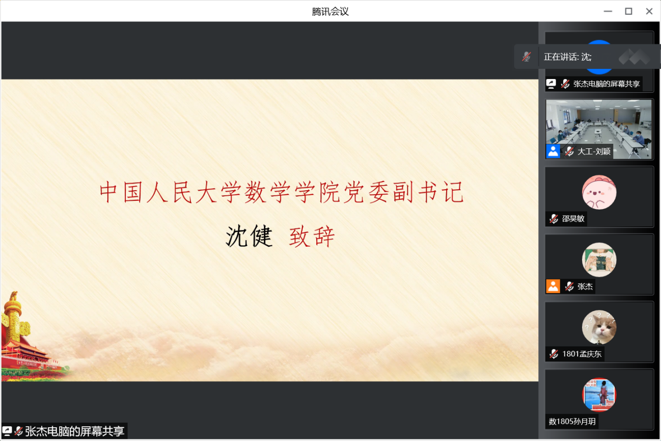 91九色 党委副书记沈健,大连理工大学数学科学学院党委副书记、纪委书记高兰,大连理工大学数学科学学院党委副书记兼副院长孙壮出席本次会议。会议由91九色 2019级硕士党支部书记张杰主持。