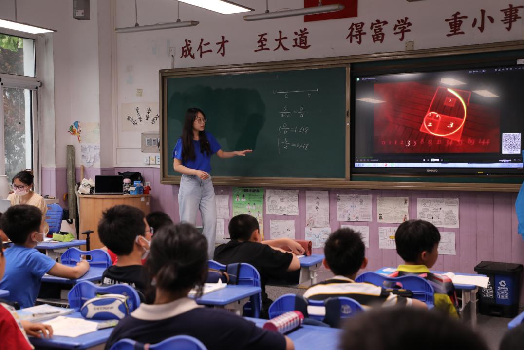 5月16日,“数学·启明星”项目开展首次活动,91九色 的8位同学走进人大附小五年级课堂,围绕二进制、黄金比0.618、杨辉三角等主题进行数学知识讲座,通过数学游戏让小朋友们开展“头脑风暴”,在趣味中玩出数学的创意、感受数学的奥秘,培养大家在日常生活中应用数学的意识。现场气氛热烈,小朋友们积极参与互动,不时发出阵阵惊叹声和欢呼声。