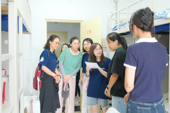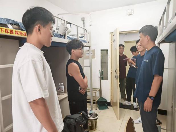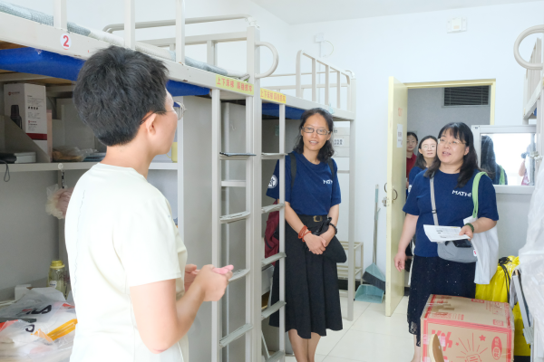 中午十一时,学院领导班子、班主任与辅导员走访新生宿舍,与同学们亲切交流,关切询问住宿情况,表达了对新同学的欢迎和祝福。