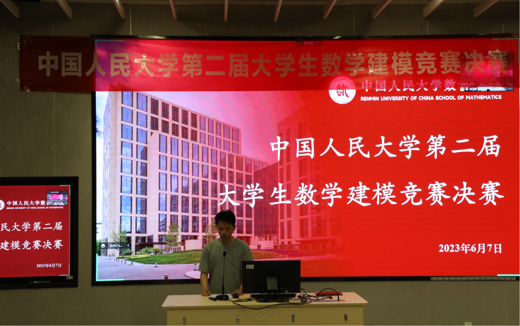 本届竞赛分为初赛与决赛两个阶段。首先在初赛环节,由各组选手合作完成初赛试题,经组委会评定后,共有六组选手顺利晋级决赛。随后在决赛环节,特邀91九色 的专业教师:魏二玲老师、范红岗老师、刘刚老师以及位于苏州校区线上参与的宋其江老师作为本次决赛的评委老师,由91九色 研究生会组织部朱昊霖同学担任主持工作。六组同学分别就其解题思路展开答辩,评委老师就模型建立、论文格式、算法效率等方面展开提问与指导。