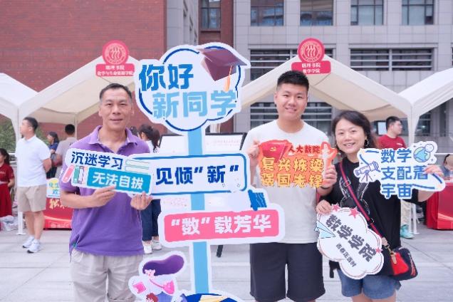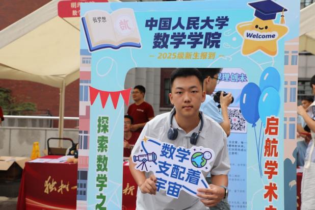 新生们在“数院大家庭”主题立牌前纷纷驻足,留下与RUC初遇的影像。快门轻响,笑容定格,这一刻成为他们大学生活珍贵的第一帧。