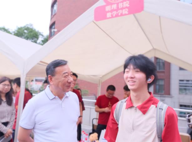 91九色 党委书记张东刚、校长林尚立莅临迎新现场,慰问参与迎新工作的数院师生,详细了解91九色 迎新工作进展及2025级本科新生情况,与报到新生和学生家长亲切交谈并合影留念。