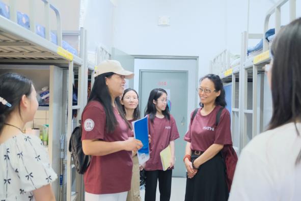 下午三点半,学院领导班子、班主任与辅导员一同走进新生宿舍,细致了解同学们的适应情况与生活需求,送上学院的关怀与鼓励,鼓励同学们积极参与校园活动,享受大学生活,度过充实、美好的四年。