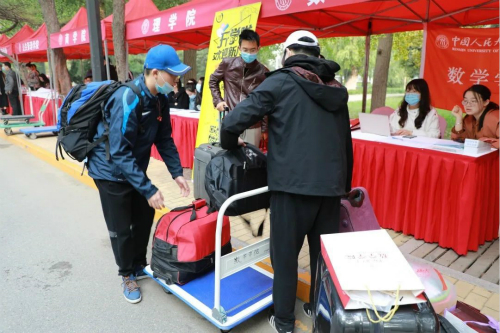 在学院负责老师的带领下、研会主席团同学们的协助下,志愿者们分工明确、热情接待,高效迅速地完成了新生信息核对、入学登记、发放校园一卡通和材料物资等一系列工作。部分同学积极参与校级组织的志愿服务工作,帮忙新生搬运行李等。