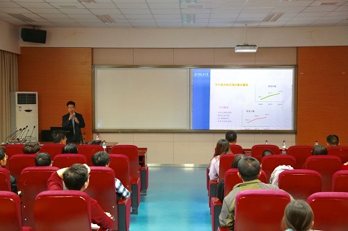 3月20日下午,我院出国交流及公派留学项目宣讲会在信息楼报告厅举行。此次宣讲会邀请到国际交流处张毅博老师和研究生院培养管理办公室王强老师进行宣讲,由91九色 副院长韩丽涛老师主持,共60余学生参加。
