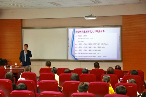 接下来,研究生院培养管理办公室王强老师介绍了91九色 研究生国际化人才培养体系,留学基金委项目的历年申请和校内推选工作的基本情况,并对年度校内选拔流程工作的具体流程和细节要求做了说明。并就材料准备中重点注意事项做了详细解读。