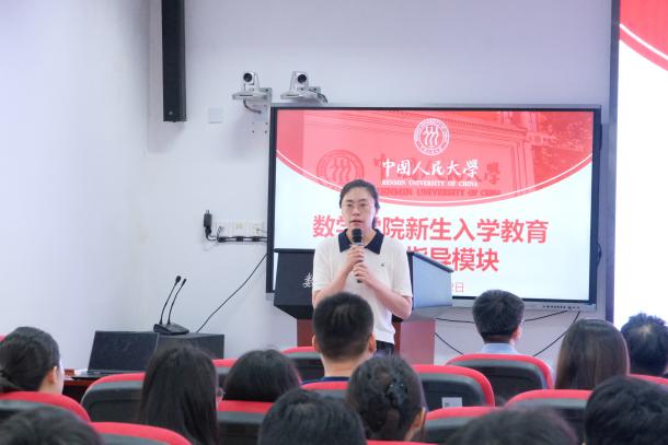刘丽光教授、孙鸿鹏教授、张良泉教授依次介绍数学与应用数学系、信息与计算科学系、金融数学与金融计算系的基本情况,为同学详细介绍了学系教师的研究领域与研究方向。研究生教务秘书蔡晓雨老师针对研究生培养方案与选课事宜展开详细说明,为新生厘清学业规划的脉络。