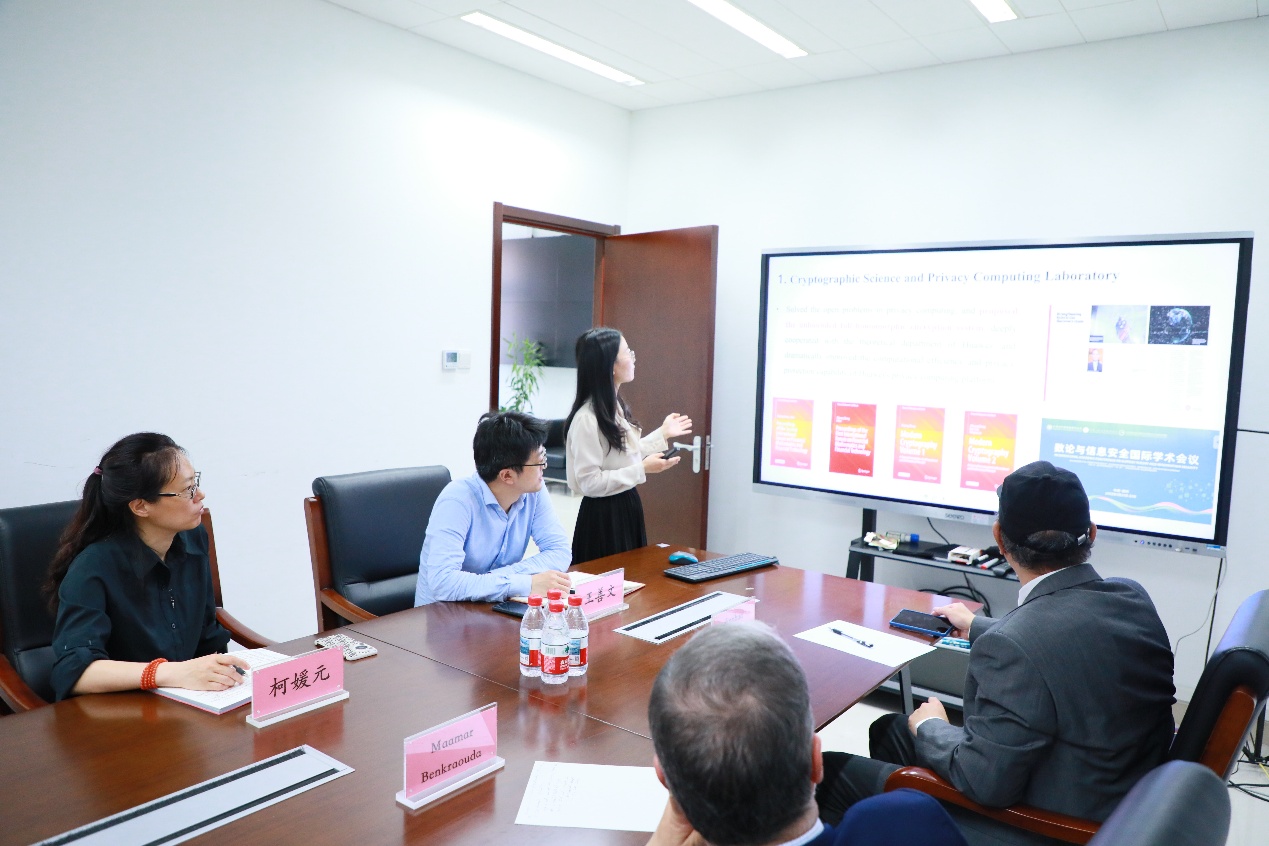 柯媛元书记向Maamar Benkraouda一行表示热烈欢迎。姜昊副院长向来访嘉宾详细介绍了学院历史、师资力量、学科建设等基本情况。随后,她进一步阐述了学院国际交流的现状,并就未来与阿联酋大学可能开展的合作方式及内容进行了系统介绍。