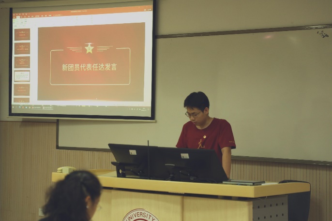 2022级双学位班的任达同学代表新团员发言,他承诺将严守团的纪律,积极参与团的活动,以更加饱满的热情和坚定的信念,投身到学习和工作中去,以实际行动践行团员的职责和使命,为团旗增光添彩,为实现自己的人生理想和社会的进步贡献青春力量。