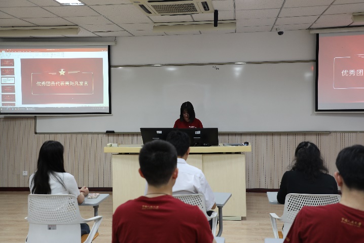 2022级拔尖班的黄玙凡同学作为优秀团员代表发言,她表示,入团应该是团员同学崭新的起点,而不是奋斗的终点,人生的道路上还有很多目标等着去实现。我们要从思想上真正加入到团组织中去,应该更加努力地做到一名团员该做的,承担一名团员该承担的责任,为更多的同学起到模范带头作用,并以此为荣,带动其他同学共同进步。