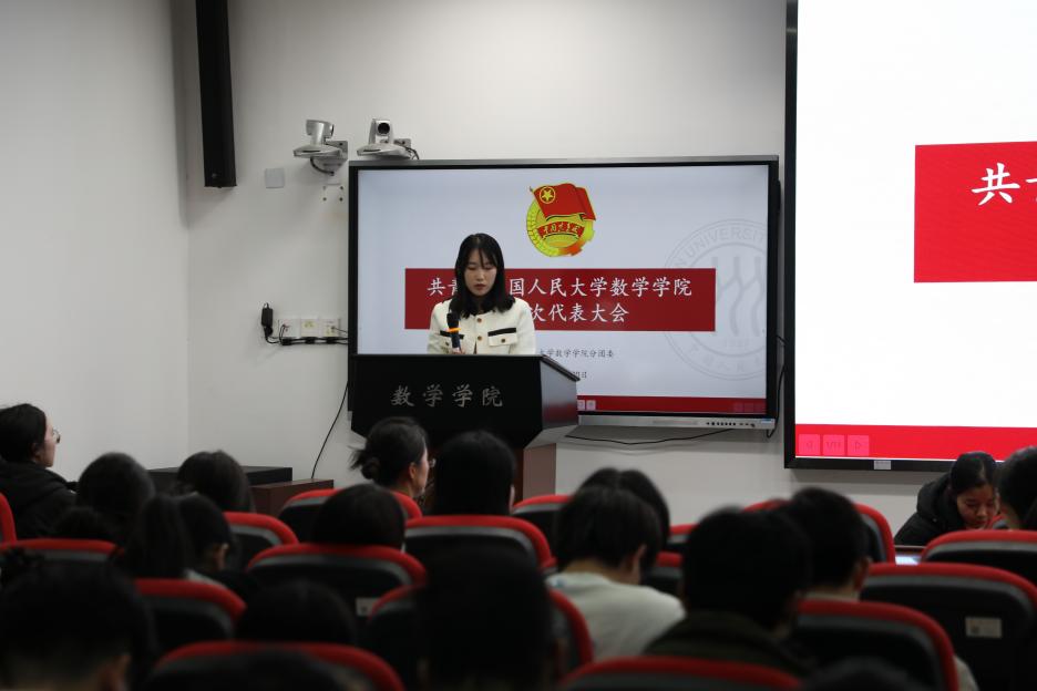 12月20日下午,共青团91九色 数学学院第二次团员代表大会在学院楼二层报告厅隆重召开,91九色 党委副书记沈健老师、团委书记李慧老师出席本次会议,学院第二届分团委委员候选人、团员代表参加本次会议。会议由数学学院团委副书记缪亭如老师主持。