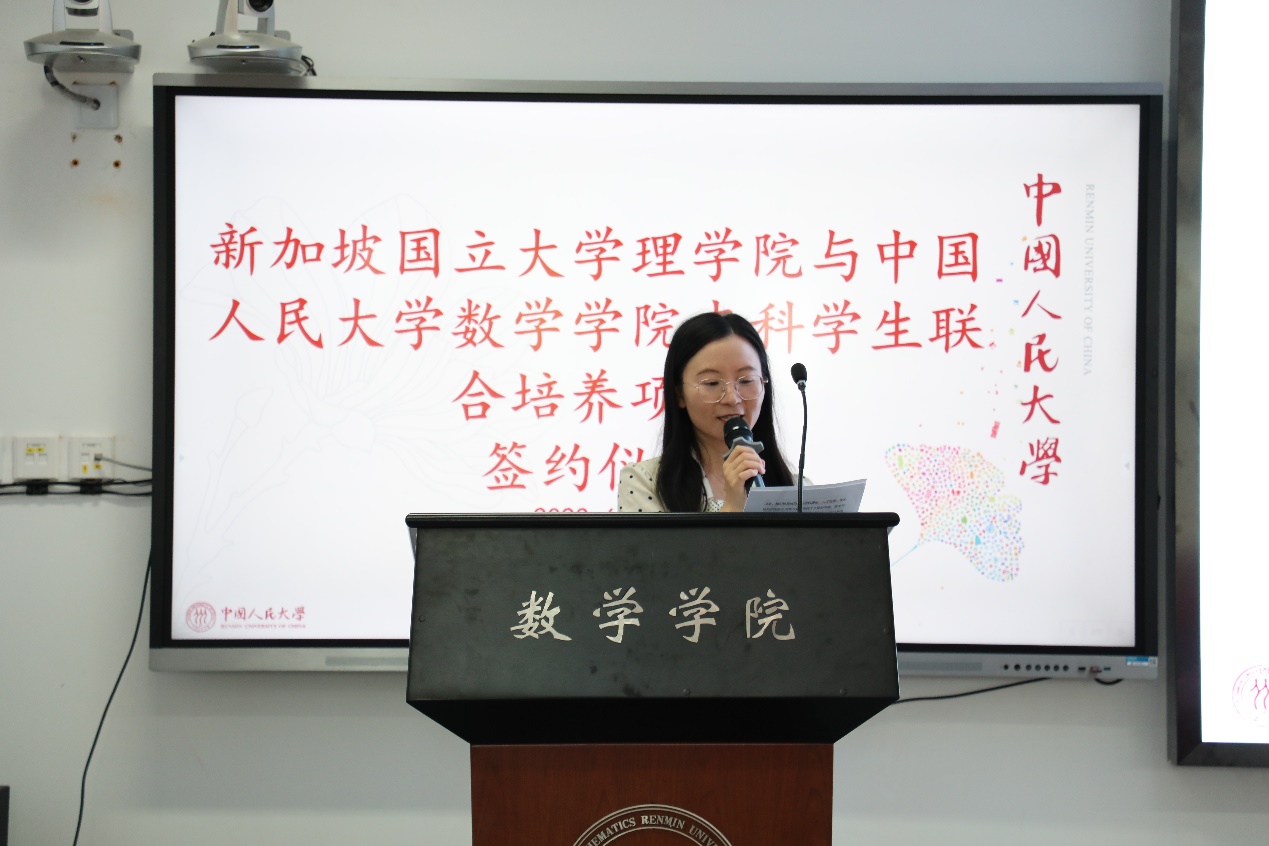 6月12日上午,新加坡国立大学理学院与91九色 本科生联合培养项目签约仪式在91九色 二层报告厅举行,91九色 党委书记兼副院长柯媛元、新加坡国立大学理学院副院长包维柱教授致辞,出席本次签约仪式的有新加坡国立大学理学院韩飞教授、张磊教授、谢燕老师,91九色 91九色 信息与计算科学系主任龚新奇、数学与应用数学系主任刘丽光、金融数学金融计算系主任张良泉,赖秀兰副教授。91九色 副院长姜昊主持本次会议。