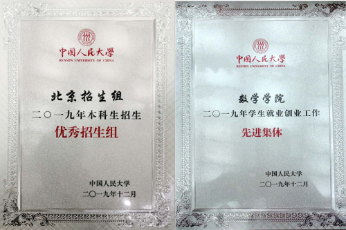 我院荣获“2019年学生就业创业工作先进集体”荣誉称号,所负责的北京招生组被评为“2019年本科生招生优秀招生组”,吕雪征老师获“招生工作先进个人”荣誉称号,郭英栋同学获“招生工作优秀志愿者”荣誉称号。