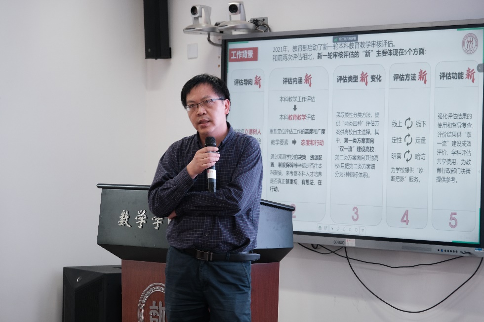 黄志勇副院长对本次本科教育教学审核评估工作背景、新一轮审核评估工作的变化和要求等进行了详细介绍,并对学院审核评估整体工作安排进行了说明。