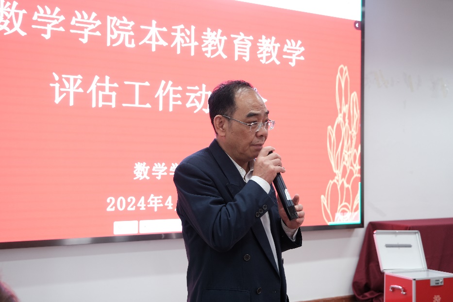 数学学院于201报告厅召开2024年本科教育教学审核评估动员会。学院领导班子全体成员、全院教职工及学生代表参加会议。会议由黄志勇副院长主持。
