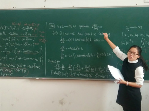 韩小利副教授报告题目是《纤维丛上的平均曲率流》,她从经典的曲线流和平均曲率流讲起,给出了她与合作者的研究线丛上平均曲率流的动机,分享了她新近的研究成果。